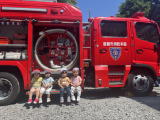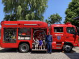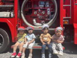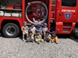 | 7月27日 避難訓練と消防車を見学しました。 消防車の前で記念撮影し、消防士の方お話を真剣に 聞いていました。 |