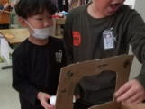 | 10月18日 まつ組ともも組の親子ふれあいデーを行いました。 園児たちの普段の様子を見てもらうために行ないましたが、 意外と子ども達は緊張していました。それでも一緒に製作を したり遊んだり、給食を食べたりして楽しく過ごされていました。 |