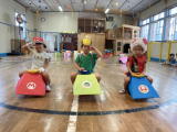 | 5月15日 お誕生会を行いました。 今月はいろんなゲームをしました。 「カラーボ−ルを運ぶゲーム」「〇×クイズ」「イス取りゲーム」 いったい誰が優勝したのかな? |